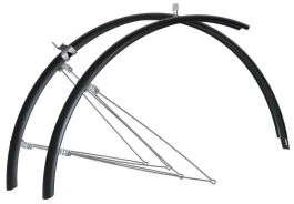 Skærmsæt til fastmontering i mat sort og 45mm brede samt rustfrie stiver.